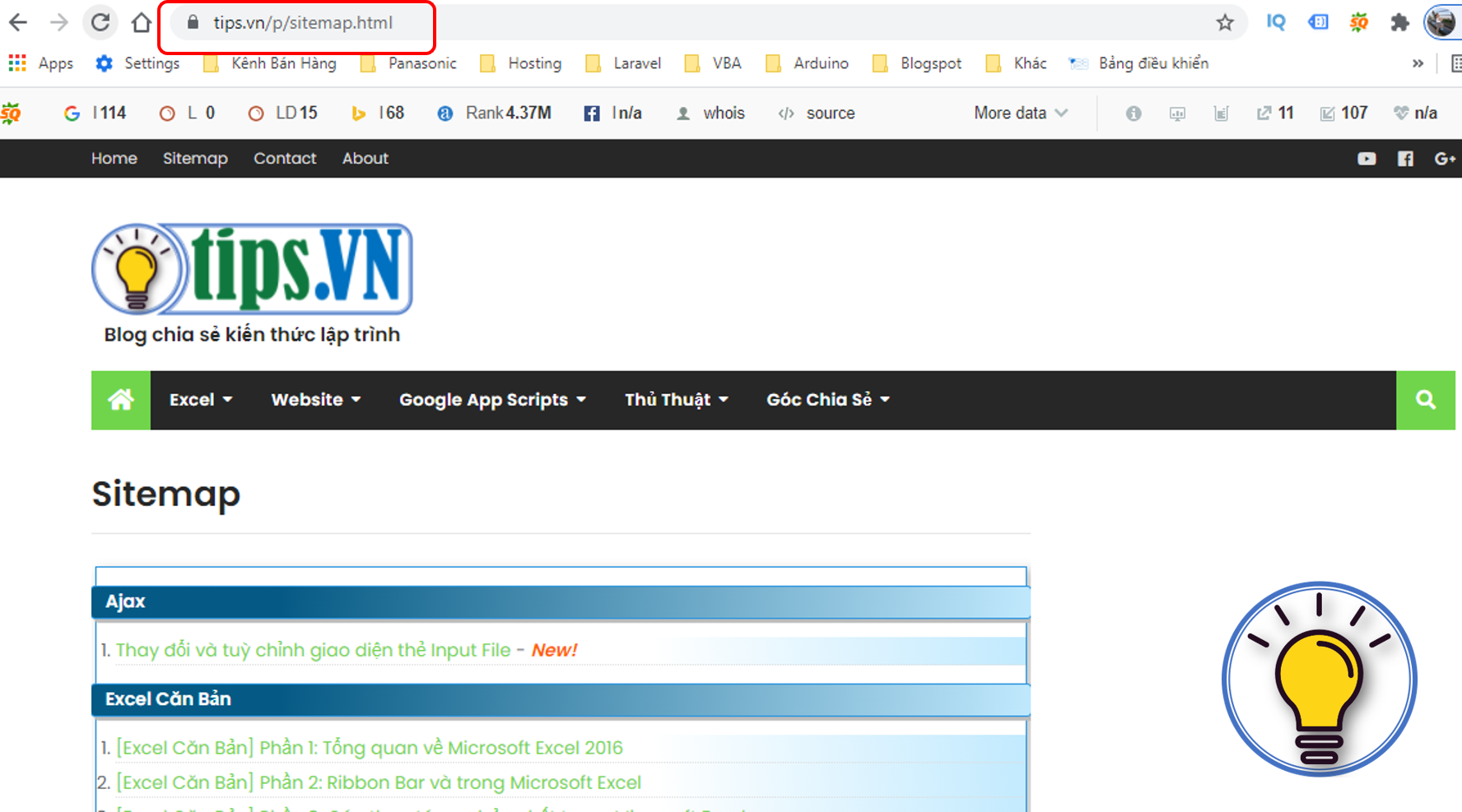 Cách làm cũng tương tự như ở phần sitemap mẫu 1. Các bạn tải file code về, thay thế địa chỉ trang web của bạn vào đoạn code "https://kungfuexcel.blogspot.com/" như hình bên dưới.